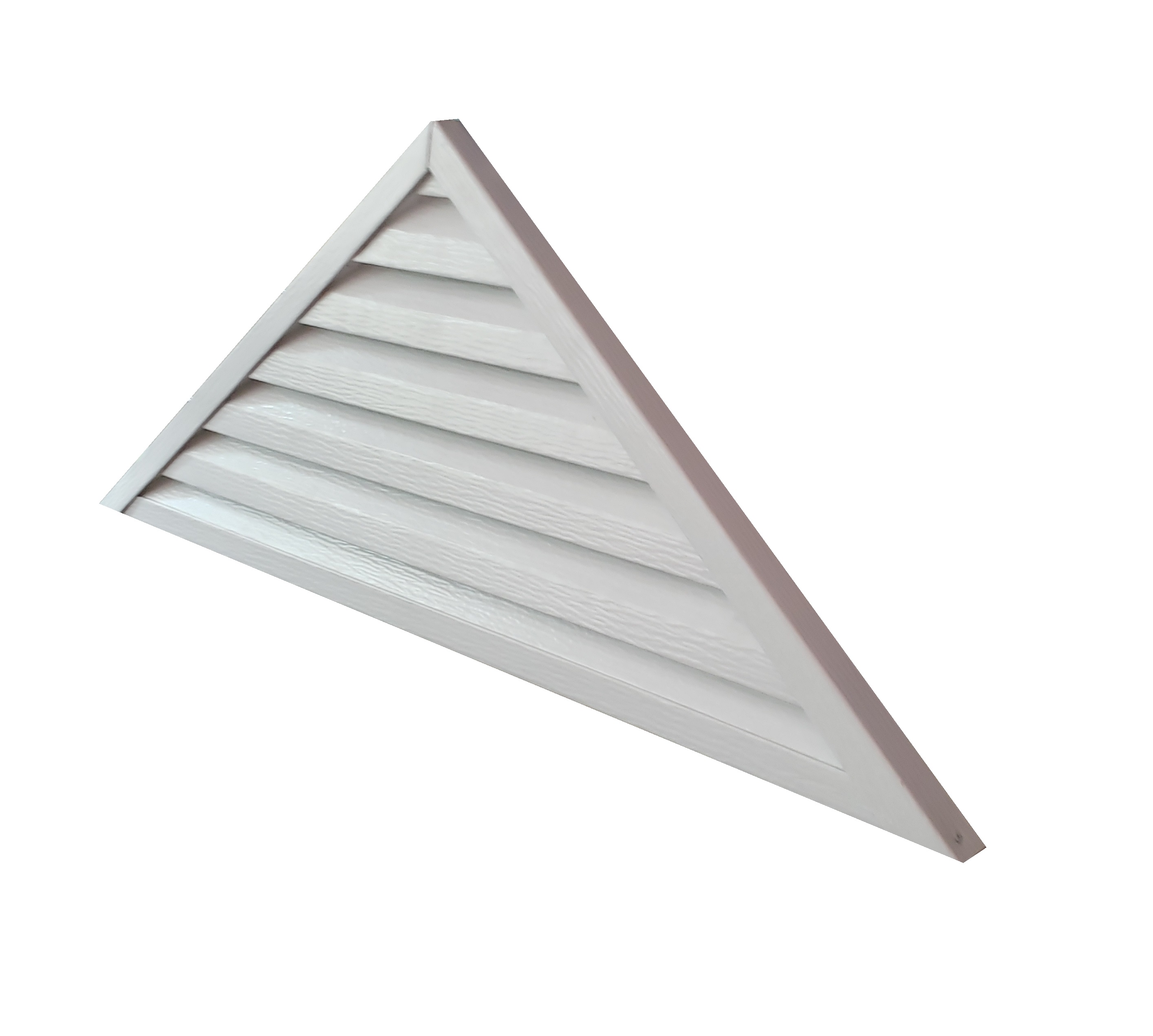 White triangular louver gable vent sized at 34 x 14.